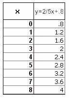 (x, y) points of (3,2) and (8,4). The equations for this line are shown